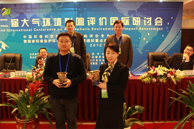领导为两届大气环境影响评价国际研讨会颁发纪念杯