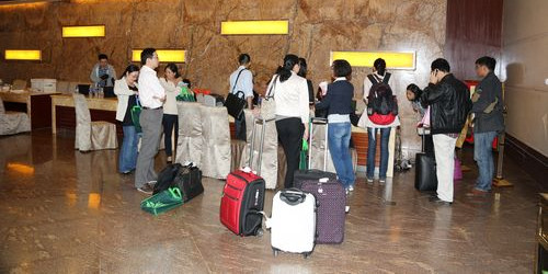 参会者陆续到来注册